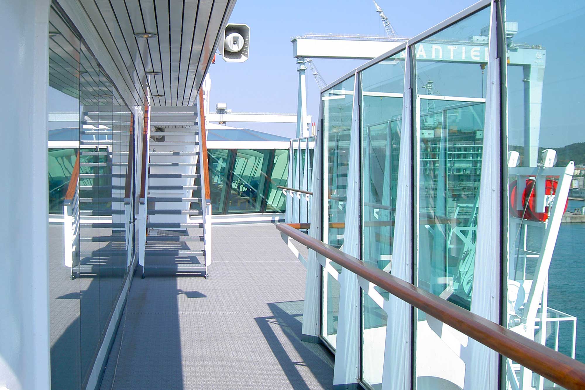 Veneto Vetro, in order to diversify the manufacturing processes and increase the efficiency of its production, has decided to invest using state-of-the-art machinery that allows us to create surfaces intended for cruise ships, large fast ships and fast ferries, which are changing from a structural perspective and are adopting new technologies. Thanks to the versatility of our Company, the specialisation of our staff and the continuous search for innovation and excellence, we work with the most important shipyards both in the construction and maintenance phase by participating in the production chain of the most prestigious ships that sail the seas around the world.